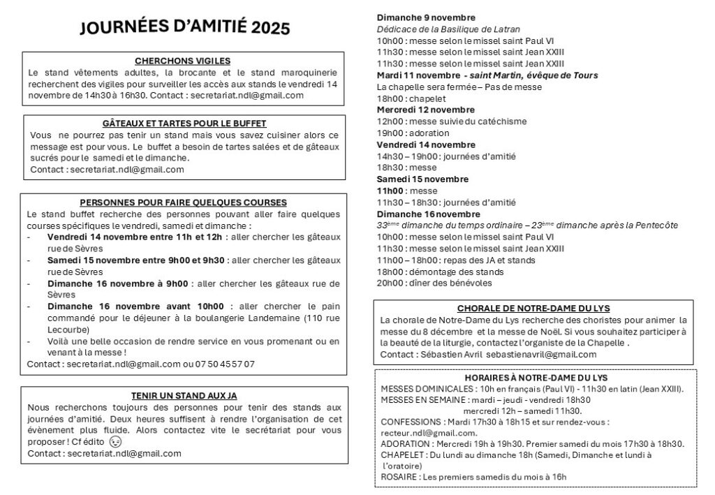 En route vers les Journées d’Amitié du 15, 16 et 17 novembre 2024